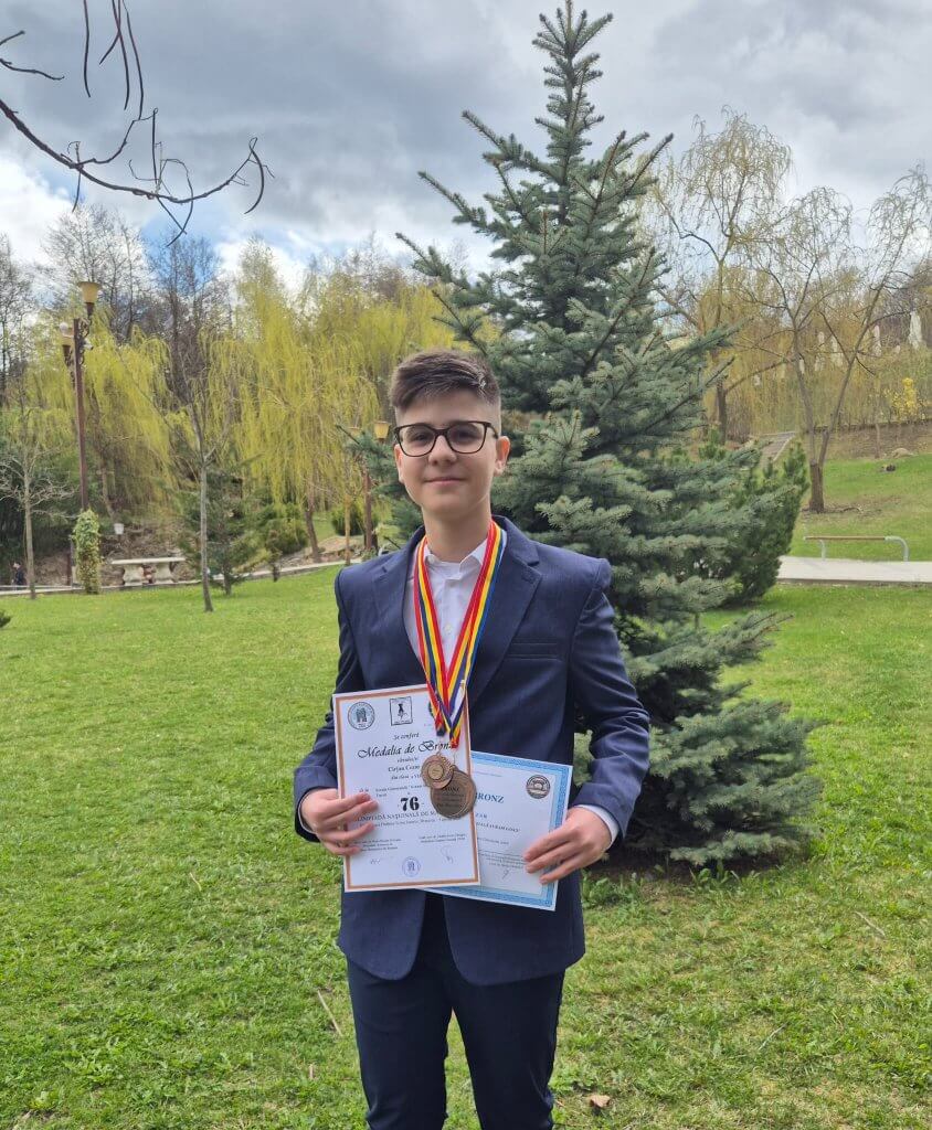 În perioada 22 – 26 martie 2026, la Baia Mare, Cezar a participat la Etapa Națională a Olimpiadei de Informatică, unde a obținut o medalie de bronz. A fost o competiție intensă, cu provocări complexe, în care Cezar a demonstrat clar că perseverența și logica riguroasă sunt atuuri pe care le stăpânește cu maturitate.